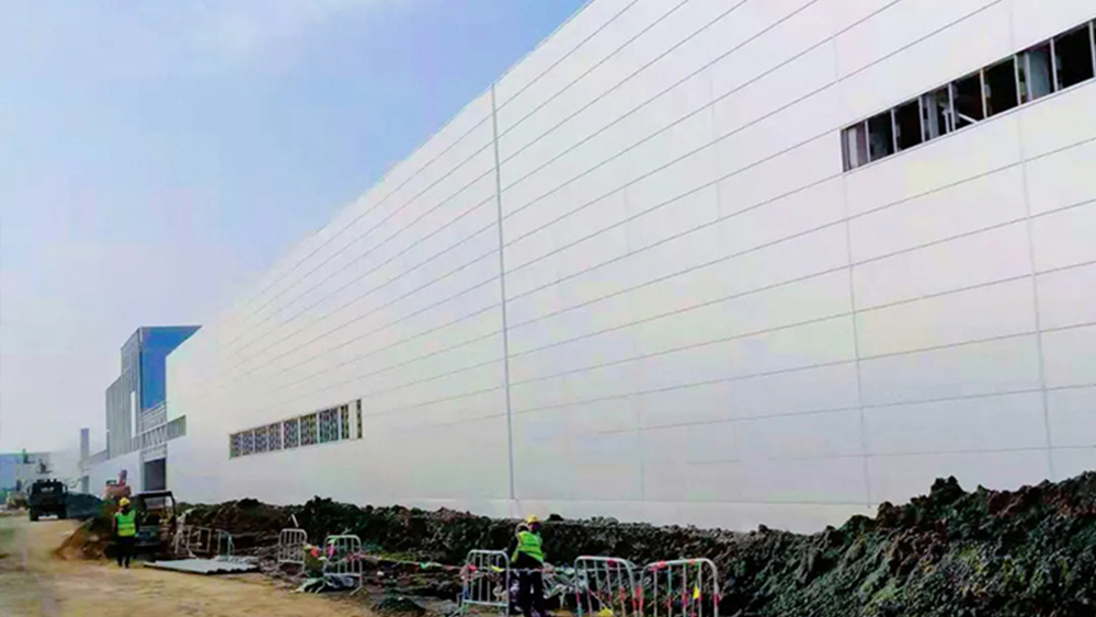 墻面外板使用BaoAM®高鋁鋅鋁鎂基板的彩涂,牌號TS300GD+AM150,自潔PVDF白銀灰。