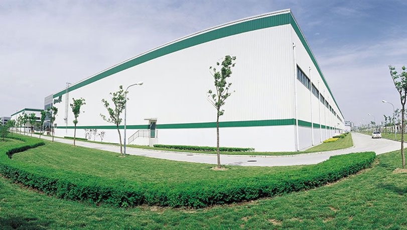 上海普洛斯物流位于松江工業(yè)區(qū),松江是上海的西入口,擁有非常便利的交通條件,2010年建設(shè)。屋面為鍍鋁鋅光板,牌號(hào)為S350GD+AZ,鋁鋅重量為165克/平方米。墻面采用寶鋼高耐侯鍍鋁鋅彩涂鋼板,顏色主體為白灰,色帶為闊葉綠,鋁鋅層重量150克/平方米,牌號(hào)TS300GD+AZ。