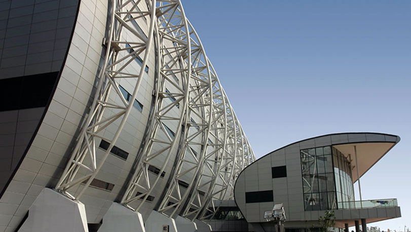 天津泰達(dá)足球場位于天津?yàn)I海新區(qū),于2004年建成。足球場建筑面積6萬平方米,可容納3.7萬名觀眾,是迄今為止天津最現(xiàn)代化的足球比賽場地。墻面使用