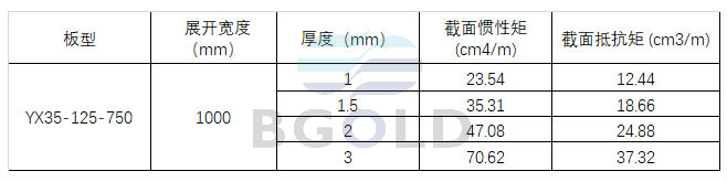 樓面鋼承板YX35-125-750型截面參數(shù):